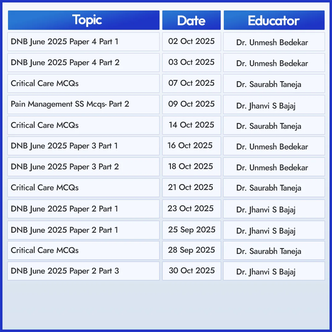 Checkout the In-App Live Session Schedule for the month of October 2025